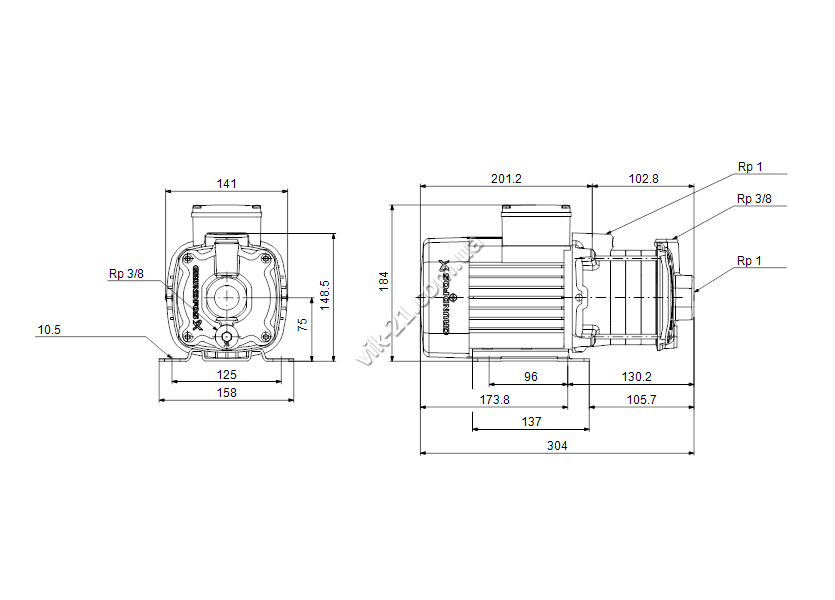 Выход насоса: Rp 1" (внутренняя резьба)