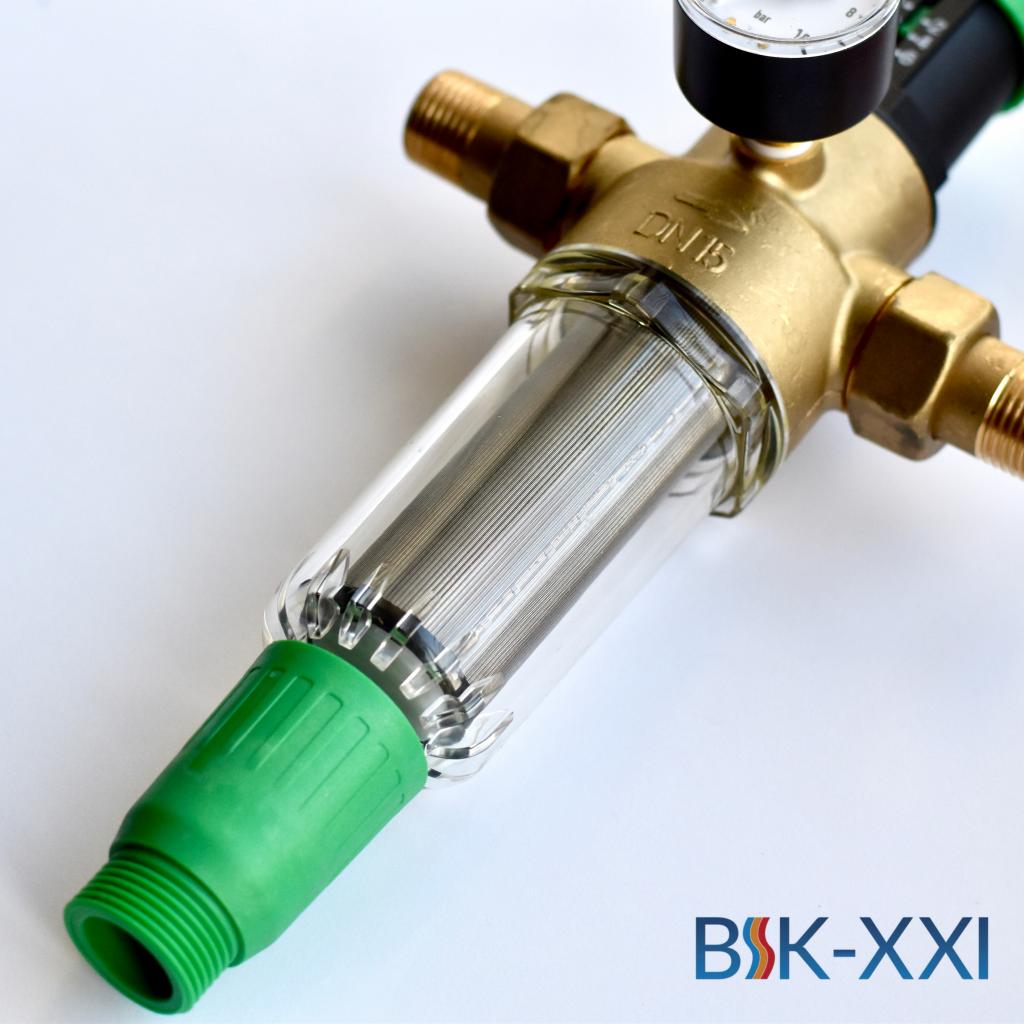 загрязнением воды в системе водоснабжения, используя только его. В нём соединяются лучшие характеристики обоих продуктов — редуктора и фильтра. Редуктор обеспечивает надёжное снижение давления в системе, способствуя тем самым нормальному функционированию бытового сантехнического оборудования, защите от гидроударов, снижению расхода воды. Фильтр же обеспечивает механическую фильтрацию от ржавчины и песка, чем помогает увеличить срок службы смесителей и бытовой техники, такой как различные водонагреватели, стиральные и посудомоечные машины.
