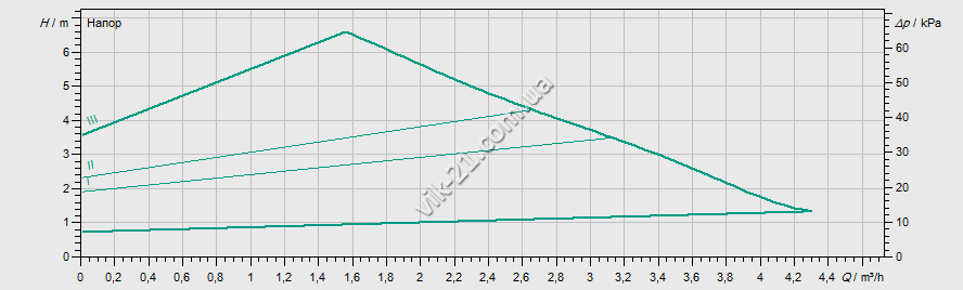 - Змінний перепад тиску (Δp-v) з 3 попередньо заданими характеристичними кривими;